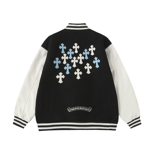 Chrome-Hearts Multi Cross Varsity Jacket - Grey Black Street Jacket 2215 -